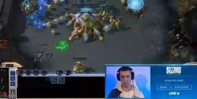 随后登场的是 Liquid 战队 MaNa,作为排名 19 的神族选手,他比 TLO 更加强大。如果 AlphaStar 可以战胜他,那将说明 AlphaStar 真的具备了人类顶尖选手的实力。