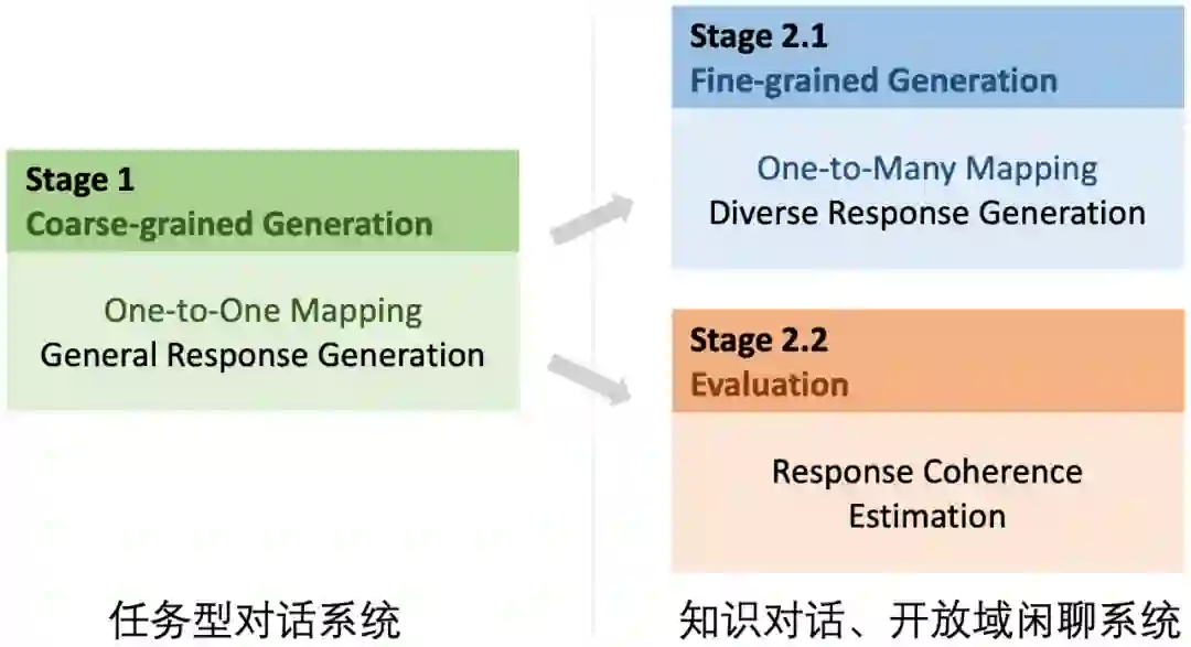 PLATO-2 是基于隐空间技术的大规模开放域对话模型,参数规模高达 16 亿,可就开放域话题深度畅聊,在中英文效果上,已全面超越 Google Meena、Facebook Blender、微软小冰等先进模型。PLATO-2 采用了课程学习进行训练,其过程包括两个阶段:第一阶段,基于简化的 “一对一” 映射,训练得到基础的回复生成模型;第二阶段包含生成 - 评估两个模型,针对开放域对话的 “一对多” 问题,通过引入离散隐变量进行建模,训练得到更高质量的回复生成模型,同时训练评估模型,从多个候选中选择出最合适的回复。这种框架具有很强的通用能力,在预训练各个阶段所获得的模型可广泛支持多种类型的对话系统。这次 DSTC9 的比赛结果就充分展示了 PLATO-2 在对话领域强大的通用能力。