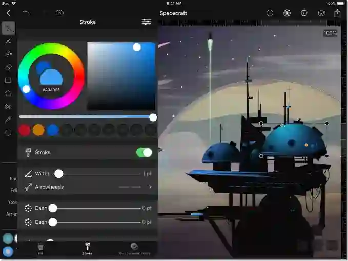 基于 Metal 和 64 位设备构建的 Vectornator Pro 虽然定位专业,但是却没有让人眼花缭乱的菜单和令人望而生畏的操作,该应用完全针对触摸屏设计,直观的拖放手势,贴心的新手导航都让它易用性更高,而且利用多点触摸技术达到如 Shift 和 Alt 按键一般的高级与针对性操作,贴合设计用户的习惯。如果你本身是使用键盘来工作,它也同样支持 iPad 外接键盘的快捷键,并且完美支持 Apple Pencil 和其他第三方触控笔。