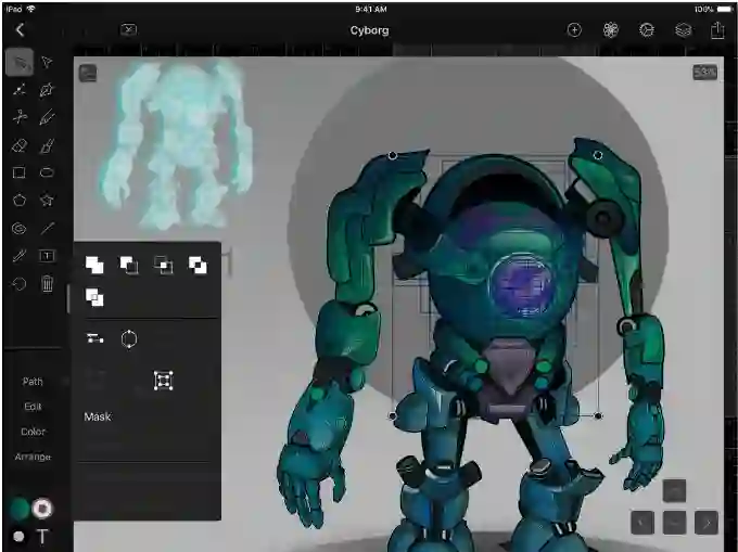 Vectornator Pro 中包含一系列真正尝试为 iOS 上的矢量设计提供桌面式体验的工具,比如无限图层,色彩配置文件(如 CMYK),自定义字体,实时混合模式,蒙版,可轻松复制路径的“Alt Switch”功能和对齐工具等等。