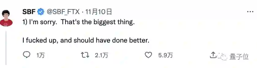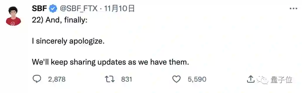 SBF不停地在推特上发表道歉,连发了22条推文。