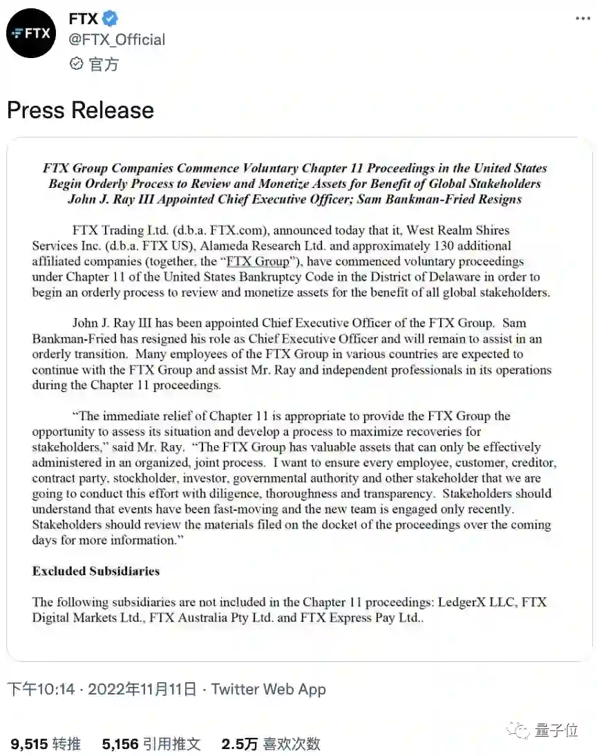 后又称FTX存款够多,FTX不拿客户资产进行投资,可以正常处理客户提现。