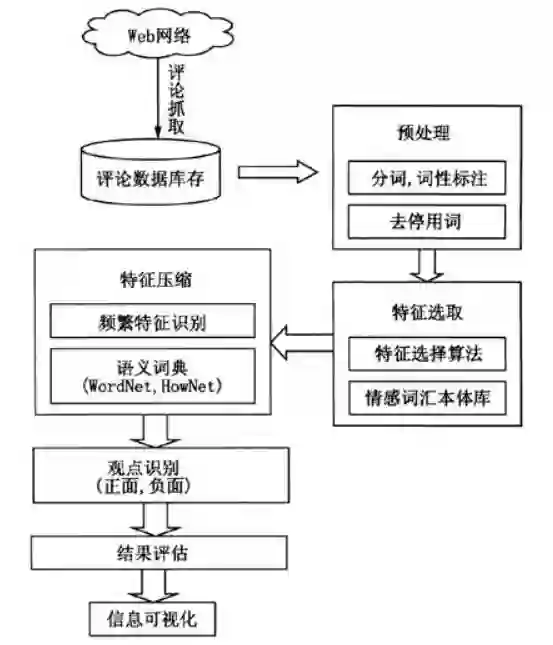 运用传统的文本分类方法是目前的主流,通过Unigram、Bigram、POS、Adj.、Position等方法进行文本表示,涉及支持向量机、朴素贝叶斯、最大熵、决策树等常用机器学习方法;另一方面,倾向转移,如“这家店铺的事物不是很好吃”,这里面的倾向转移难以识别,主要是通过词典信息 (Ikeka IJCNLP 2008)和特征选择 (Li Coling 2010)进行实现。基于词汇的方法主要针对句子中的词倾向性来识别句子的含义。Turney(ACL 2002)用POS进行文本表示,PMI进行词汇倾向分析,最后计算整个句子的情感倾向;Taras(COLING 2008)则利用了句子和词汇混合方法进行联合识别;Qiu(CIKM 2009)提出自学习方法,利用词典信息产生初始标注利用置信度高的样本作为训练集,训练分类器利用启发式规则对于多个分类器进行集成;另外还有半监督方法(Li ACL 2009),建立文档与词汇的共现矩阵,训练Matrix Factorization Model,利用少量的标注语料以及词典的先验知识,同时对于未标注样本进行标注。