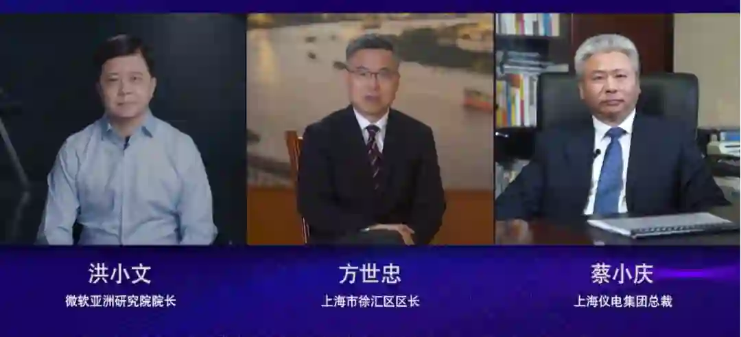 从左至右:微软亚洲研究院院长洪小文、上海市徐汇区区长方世忠、上海仪电集团总裁蔡小庆