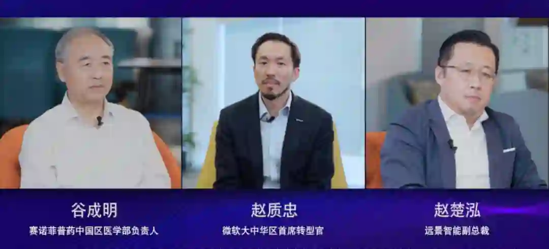 从左至右:赛诺菲普药中国区医学部负责人谷成明、微软大中华区首席转型官赵质忠、远景智能副总裁赵楚泓