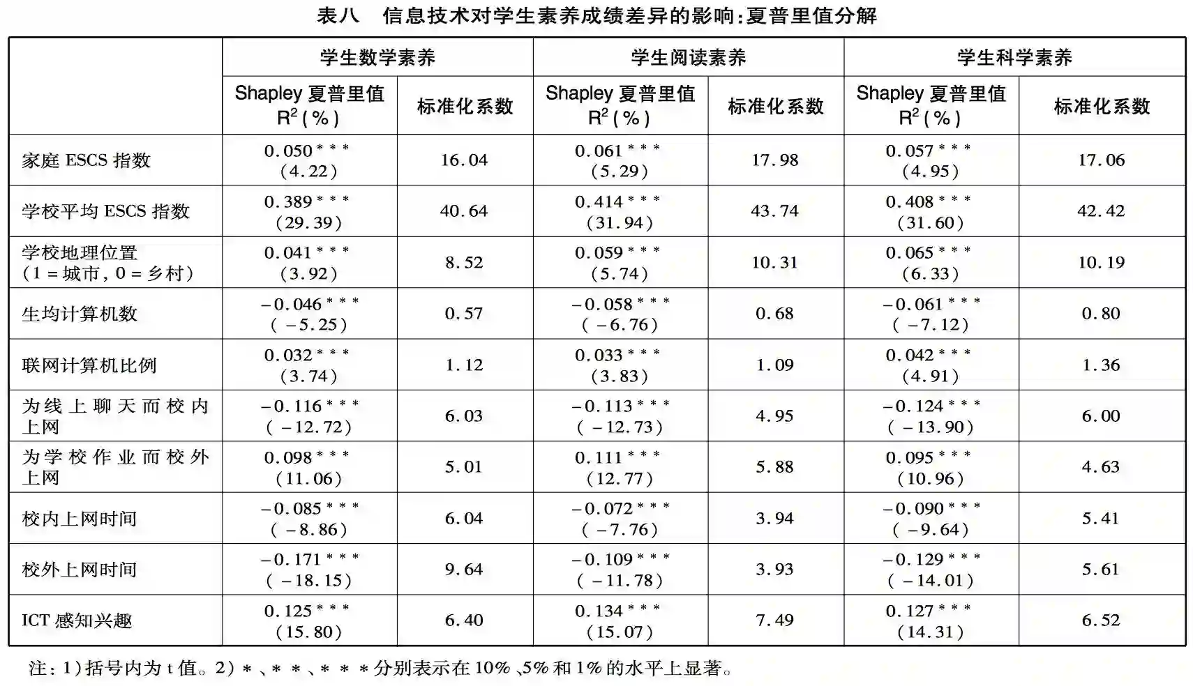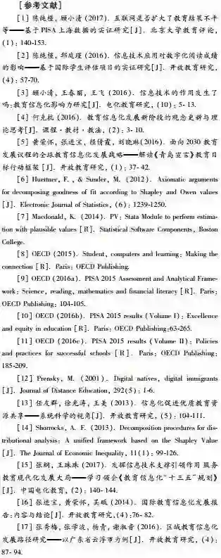 关键词:教育信息化;信息技术;学生素养;PISA;夏普里值分解