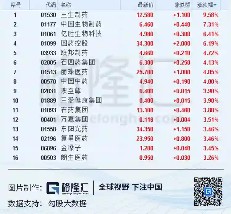 医药股集体飘红,三生制药大涨9.58%
