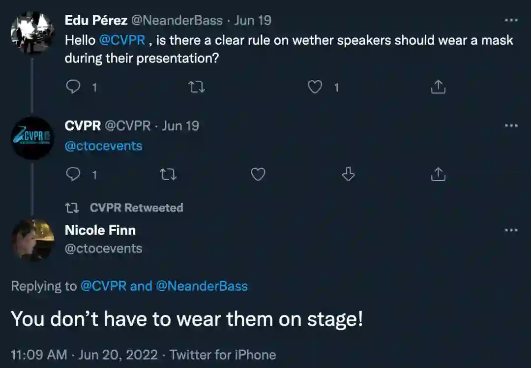 CVPR组委会也并未要求演讲者在演讲过程中佩戴口罩: