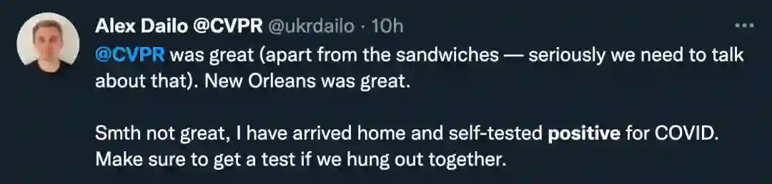 人在美国,刚从CVPR会场回来,阳了