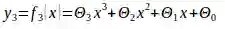 从上图可看出二项式对数据的拟合度好于一项式。但是二次方程在某些数据样本上仍拟合得不太好。于是我们创建了一个更复杂的三次多项式模型,如下: