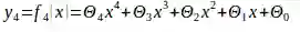 可以看出新的模型在加上新的特征后捕捉到了更多的三次方数据,对数据的拟合度更好。为了进一步提升拟合度,我们将方程提升到四次方,如下: