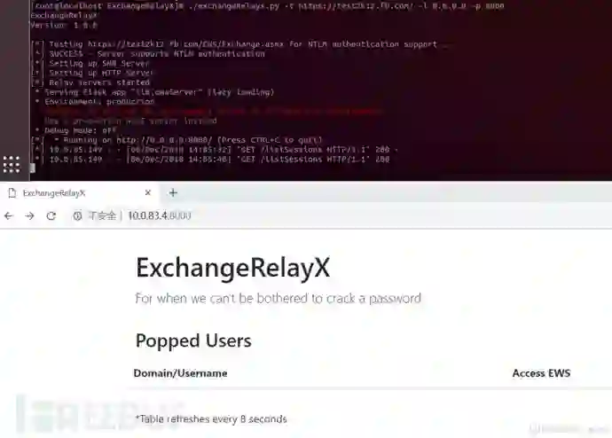 启动ExchangeRelayx,将管理后台监听在本地8000端口。