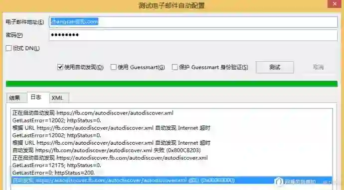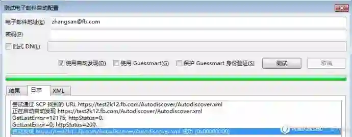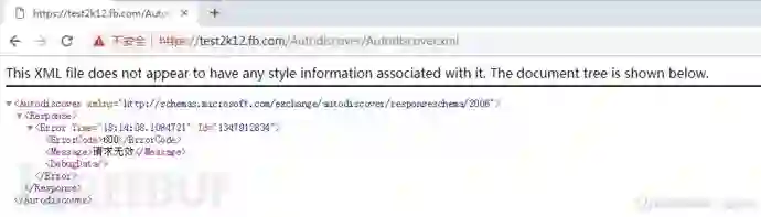 Autodiscover自动发现服务使用Autodiscover.xml配置文件来对用户进行自动设置,获取该自动配置文件需要用户认证,如访问http://test2k12.fb.com/Autodiscover/Autodiscover.xml文件将提示需要认证,如下为认证通过,将获取到如下的XML文件内容: