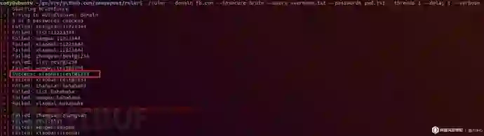 password spray同样是一种破解账户密码的方法,与常规的暴力破解方法不同的是,password spary针对一批账户进行破解,每次对单个用户账户进行一次或少数次登陆尝试后换用下一个用户进行尝试,如此反复进行并间隔一定时间,以此方法躲避多次暴力破解的检测和账户锁定的风险。