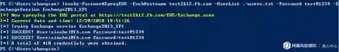 Invoke-OpenInboxFinder -ExchangeVersion Exchange2013_SP1 -ExchHostname test2k12.fb.com -EmailList .\users.txt