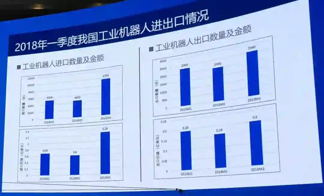 首先,赵杰教授从出口和进口的增幅角度对国产工业机器人的发展进行了一个简单的分析:2012年到2018年3月有一个比较好的势头。