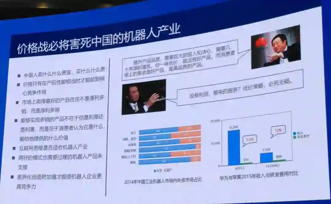 赵杰教授指出,机器人行业出现了一个怪圈:引进国外先进技术的时候是买什么什么贵,因为我们好几家国产厂商和人家去谈;引进以后是卖什么什么便宜,因为大家都在以很低的价格来卖。
