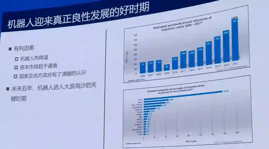 另一方面,资本市场在机器人这个领域相对趋于理性或者谨慎。资本是有两面性的:引入资本可以促进产业发展;同时也由于资本的疯狂,导致很多没有核心竞争力的企业能够存活。
