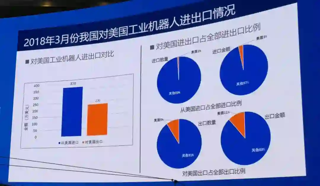 在未来几年,无论从出口还是进口角度,美国都不是中国工业机器人的主要贸易市场,因此短期来看影响并不大。