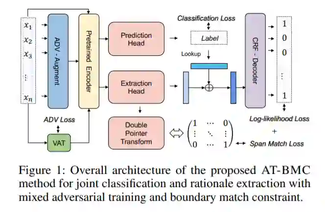最近的研究表明,可解释性和鲁棒性是可信和可靠文本分类的两个关键因素。然而,以往的研究通常涉及两个方面之一:i)如何在有利于预测的同时提取出可解释性的准确理论;如何使预测模型对不同类型的对抗攻击具有鲁棒性。从直观上看,一个产生有用解释的模型应该在对抗攻击时更加鲁棒,因为我们不能相信输出解释但在小扰动下改变预测的模型。为此,我们提出了一个联合分类和基本原理提取模型AT-BMC。它包括两种关键机制: 混合对抗训练(AT)利用离散空间和嵌入空间中的各种扰动来提高模型的鲁棒性,边界匹配约束(BMC)利用边界信息的引导来更精确地定位理论。在基准数据集上的性能表明,所提出的AT-BMC在分类和基本原理提取方面都大大优于基线。鲁棒性分析表明,所提出的AT-BMC有效地降低了攻击成功率,达到69%。实证结果表明,鲁棒的模型与较好的解释之间存在联系。