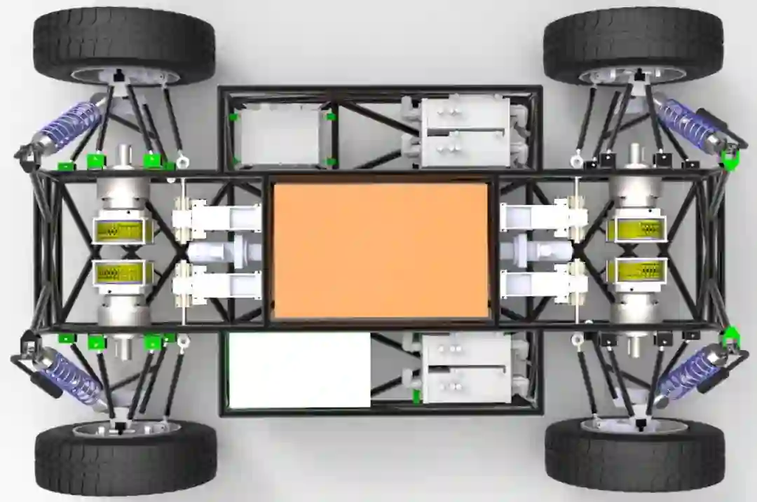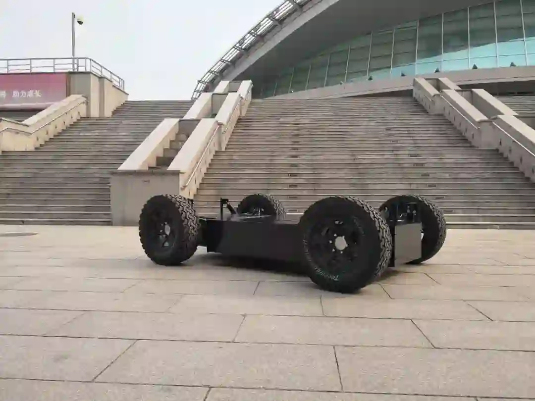 团队打造的四轮独立驱动、四轮独立转向的超级军用无人车底盘
