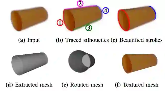 我们引入一个交互式系统,用于从单个或多视图的点云中提取广义圆柱体和长方体的几何图形,我们提出的方法是直观的,只需要用户跟踪对象的轮廓。利用用户对对象的感知理解,我们提出的方法能够提取出精确的模型,即使在存在遮挡、混乱或不完整的点云数据的情况下,也能保留原始对象的细节和规模。我们通过在公共RGBD数据集上的一系列实验来证明我们所提议的方法的优点。我们使用每个对象的最多两个视图,从数据集中提取了16个对象。提取的模型与原始对象具有高度的视觉相似性。此外,在比较我们提取的模型和数据集的地面真实数据时,我们实现了均值归一化的豪斯多夫距离为5.66%。
