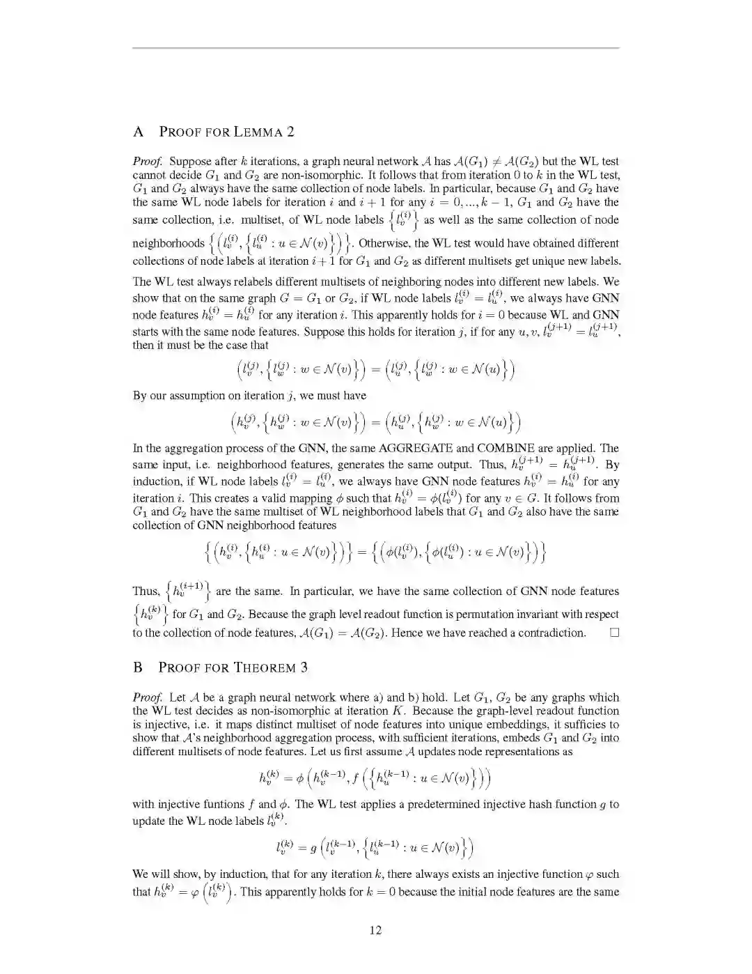 证明了GNN在区分图结构方面的能力不会超过WL test。