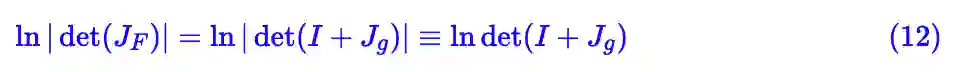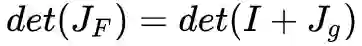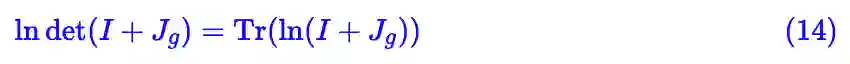 最后一个恒等号,是因为 det(I+Jg) 一定是正数,所以可以去掉绝对值。这是可以证明的,但只是细节部分,我们就不纠结了,读者自行去看作者提供的参考文献吧。