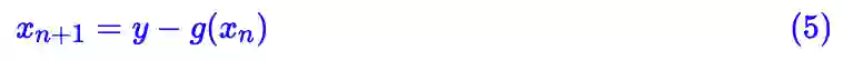 这样一来,我们已经回答了为什么 Lip(g)<1 就有 x+g(x) 可逆了,同时已经给出了求逆函数的方法——就是通过 (5) 迭代到足够的精度: