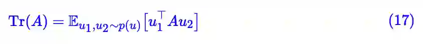利用“均值为 0、协方差为单位矩阵”这个性质,直接按定义就可以证明上式了,并不困难。然后,作者提出了一个显得“既无赖又合理”的方法:对于每次迭代,我只从 p(u) 中随机选两个向量 u1,u2 出来,然后认为就是 Tr(A),即: