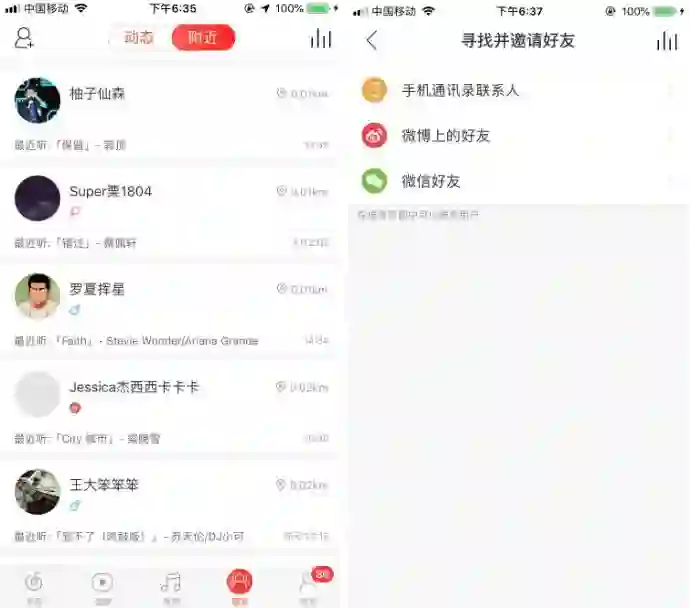 第二,基于网易云音乐功能属性而形成的社交圈。包括LBS“附近功能”,用户通过“附近的人”发现与自己有相同音乐爱好的陌生人,从而进行社交;以及通过乐评互动方式添加好友,即通过转评赞来表达自己的感受、态度,在互动的基础上建立社交圈。