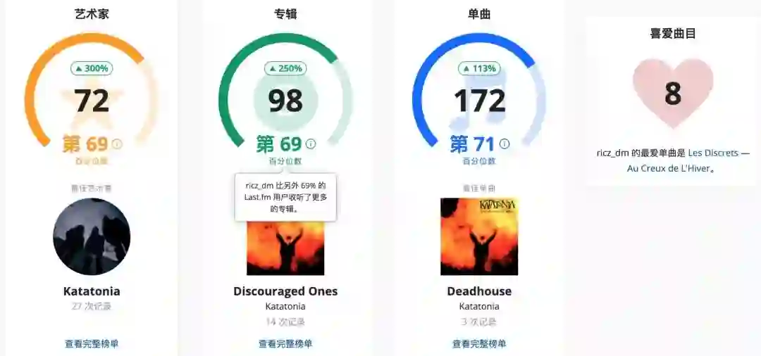 最厉害的还不是这个,我随便截取了Last.fm一个用户的界面,大家可以看看下图显示的数据: