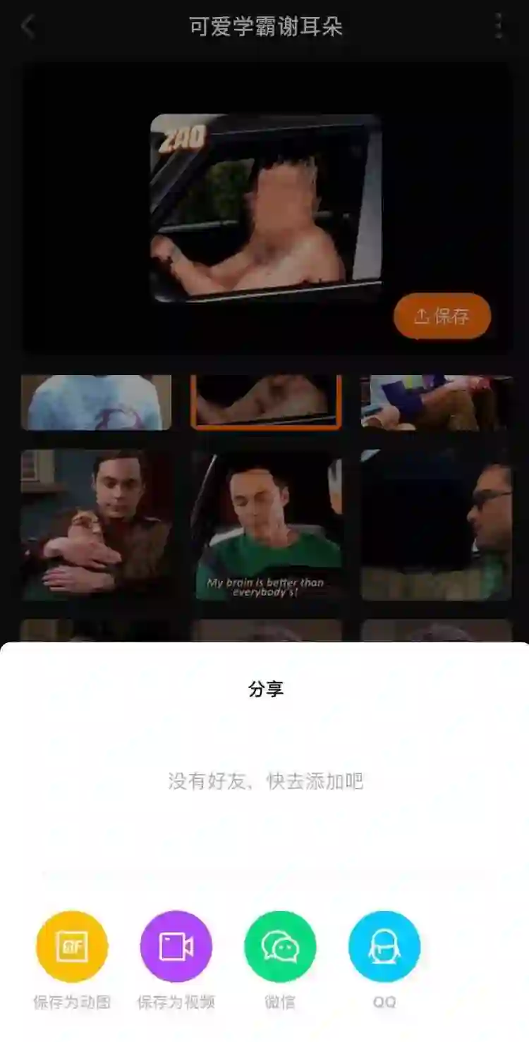 其制作表情包和视频的页面都会提醒你“分享”与“添加好友”。作为一个视频制作工具,其功能性被减弱,社交和传播性发挥的很好。这也就是为什么ZAO用着冷饭换脸技术依然还能火一把。