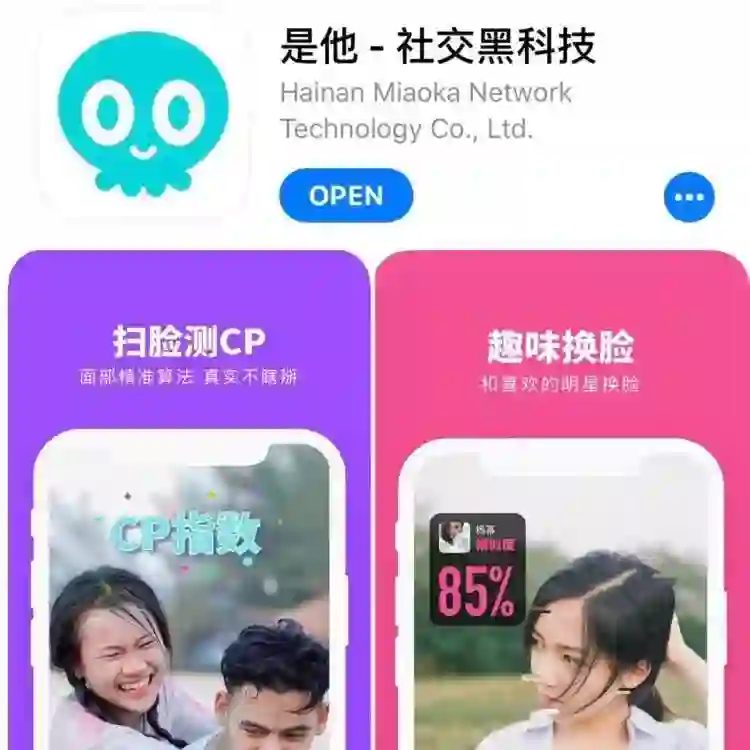 据PingWest品玩了解,去年名为“是他”的社交软件主打“黑科技”,其软件内已经开始使用人脸识别技术,例如:扫脸识别好友、面部测算CP指数、趣味换脸。不少用户在评论里表示:用人脸识别就能认识对方,相当美妙。