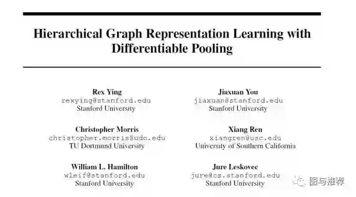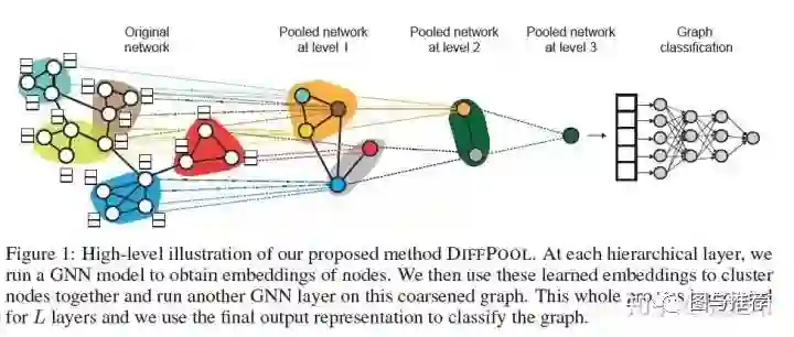 DiffPool: Differentiable Pooling介绍了一种聚合图中的节点,从而学习到包含层级信息的图表示。