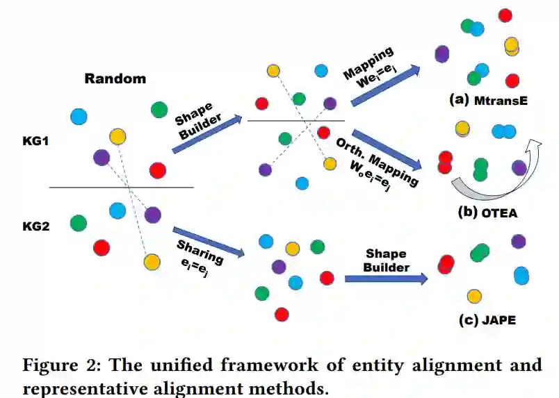 实体对齐旨在基于已有对齐实体标注的情况下,确定不同KG中未知的对等实体,其本质是multi-source KGs的一体化.