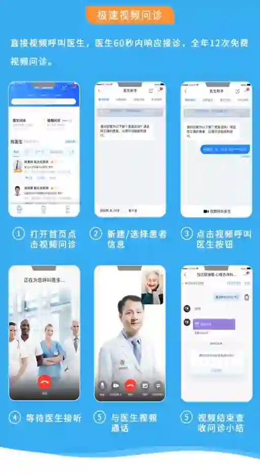 使用长辈智能手机的用户在「极速问诊」APP中按照新用户注册流程完成注册,即可以享受一年无限次数的极速图文问诊和一年12次免费的极速视频问诊。