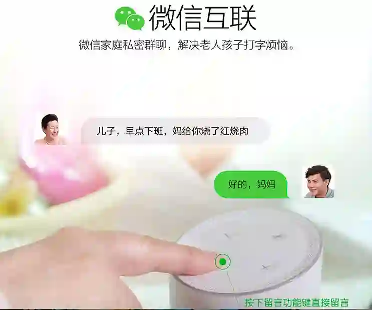 除此之外,腾讯听听智能音箱还配置了 语音收发微信的功能,可以让儿童与老人不借助手机就能更轻松便捷地与家人联系交流,还可以通过语音提醒微信消息。