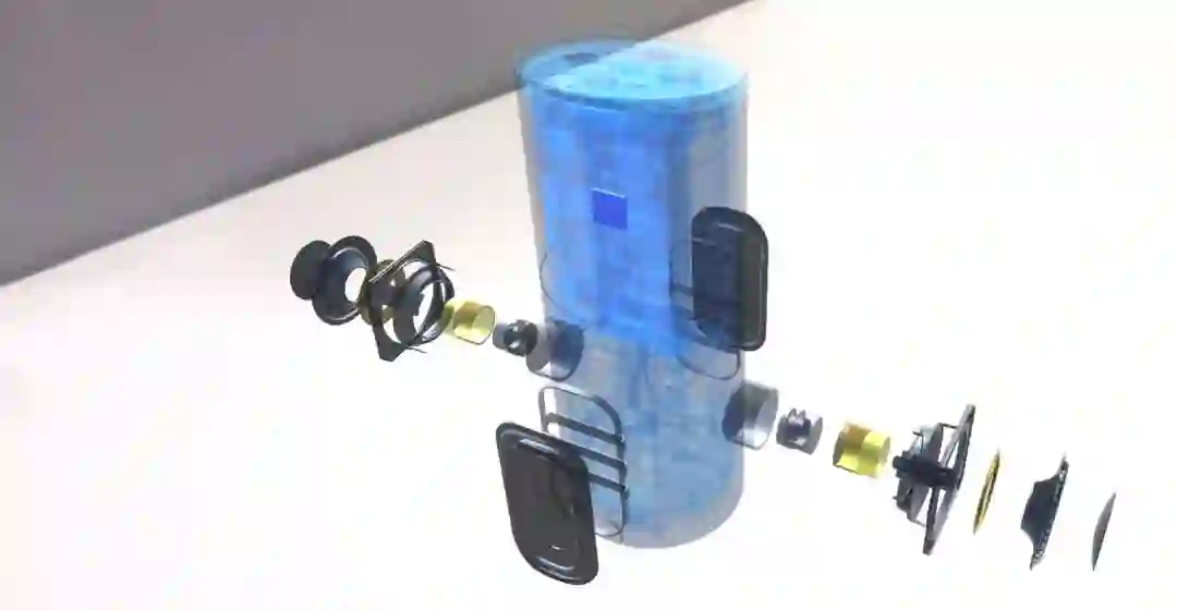 产品介绍中写道,听听音箱呈对称一体式,配备有双 1.8 寸立体声喇叭,双低音辐射单元。