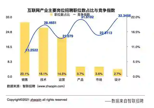 从智联招聘发布的《2021年互联网产业求职指南》来看,运营岗的招聘需求量之高,位居互联网产业前3名。
