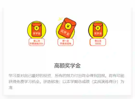 第一名同学学费全返、第二名同学学费返还50%、第三名同学奖励500元!