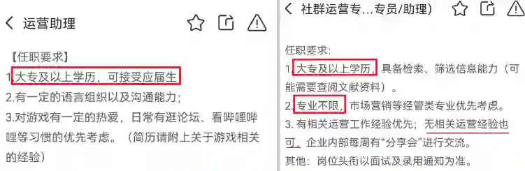 虽然运营岗的薪酬高,门槛却很低。一个主要的原因是目前高校还没有开设和运营直接对口的专业,在学历和专业上要求相对宽松。