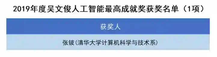 2019 年 11 月 18 日,中国智能科学技术领域唯一的国家级学会——中国人工智能学会(CAAI)正式公布将 2019 年度「吴文俊人工智能最高成就奖」授予清华大学计算机系教授、中国科学院张钹院士。