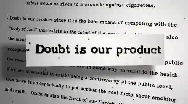 《贩卖怀疑的商人》书中阐述过,特殊利益集团如何通过开展复杂的公关活动来组织政府就一系列于工商业相关的环境和健康议题采取行动。这些团体意识到,他们无须否定与自身利益相悖的研究结果,只要制造怀疑就足以混淆视听让政客协助他们减缓监管进程。并且这些组织不止一次使用该策略阻挠干扰减轻或消除吸烟、酸雨、臭氧空洞等环境问题的公共政策。