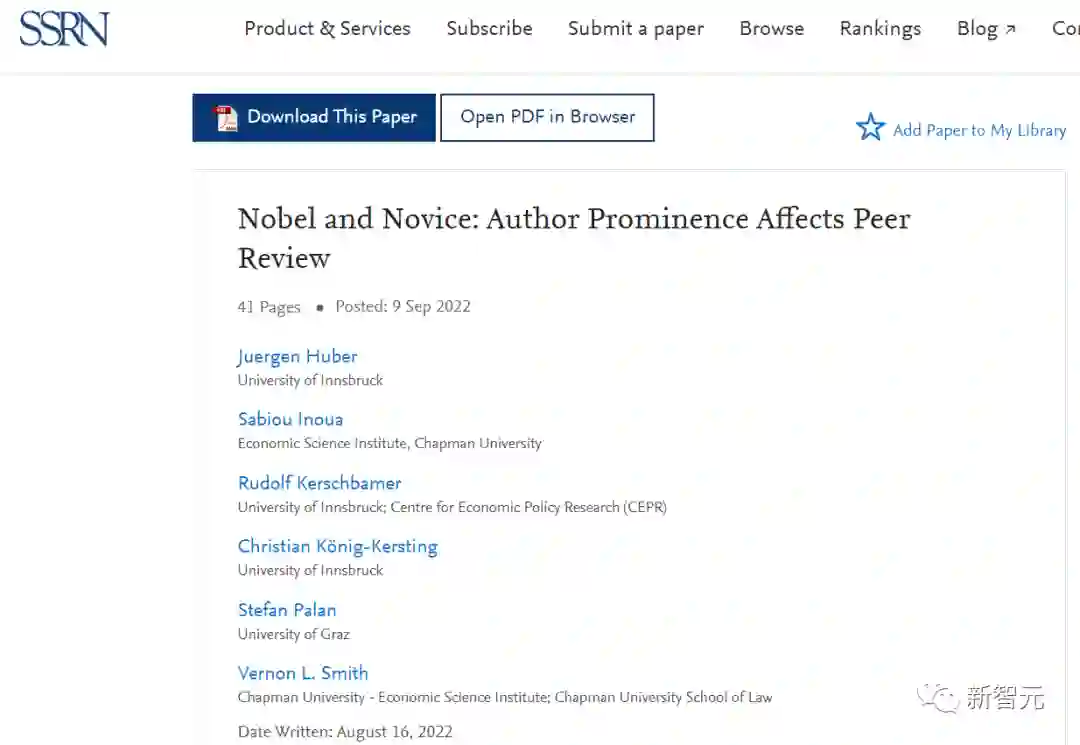 如果一篇论文的唯一作者是无名之辈,只有9.9%的评审人愿意接收;同样一篇论文,如果改成由诺贝尔奖得主署名后,被接收率竟飙升至59%。