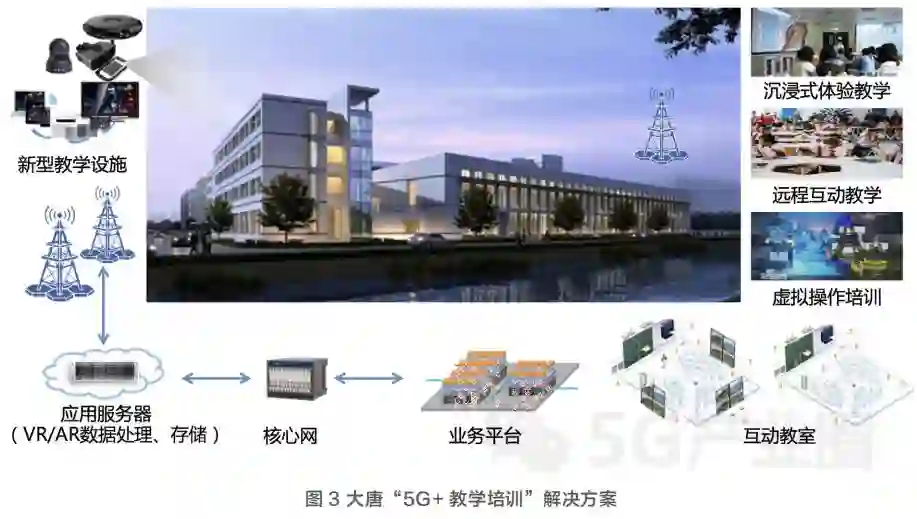 通过 VR/AR及移动边缘计算等新技术,搭建多人互动的教学平台,与第三方合作开发个性化的 AR 教材,提供沉浸式体验教学、远程互动教学、虚拟操作培训等多种业务,为学校打造数字生态系统,为学生提供高效能、个性化学习场景。