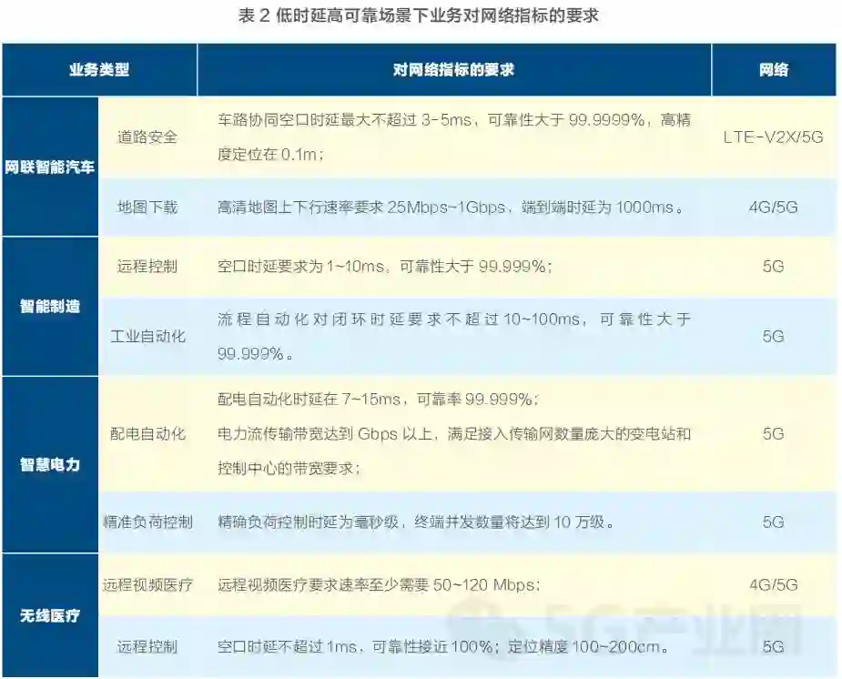 5G 定义的超高可靠、低时延的特性,将突破原有移动通信的行业局限,广泛应用于网联智能汽车、智能制造、智慧电力、无线医疗等更多领域,不同业务对网络可靠性和低时延也有着不同的要求。