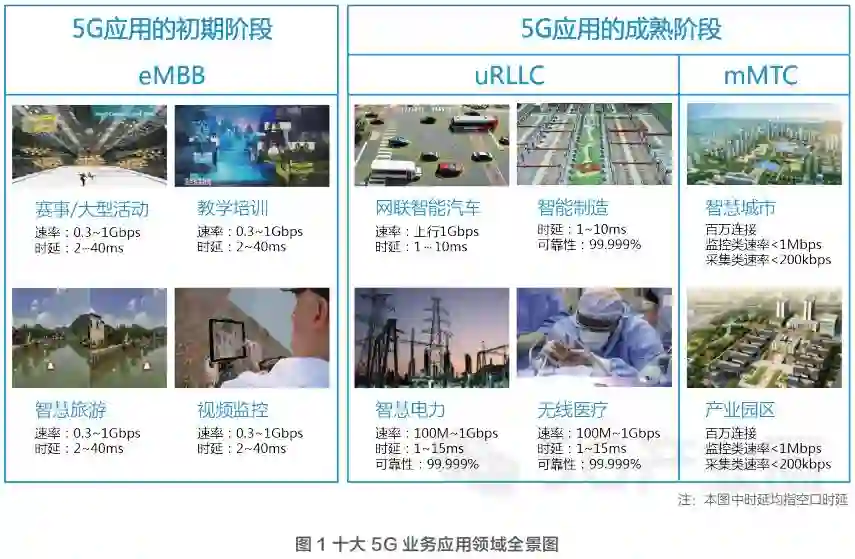 基于 5G 技术的业务应用,既面向 4G 网络演进的增强移动宽带场景,又支撑新兴的低功耗大连接、低时延高可靠场景,必将成为未来移动通信市场的重要增长点。