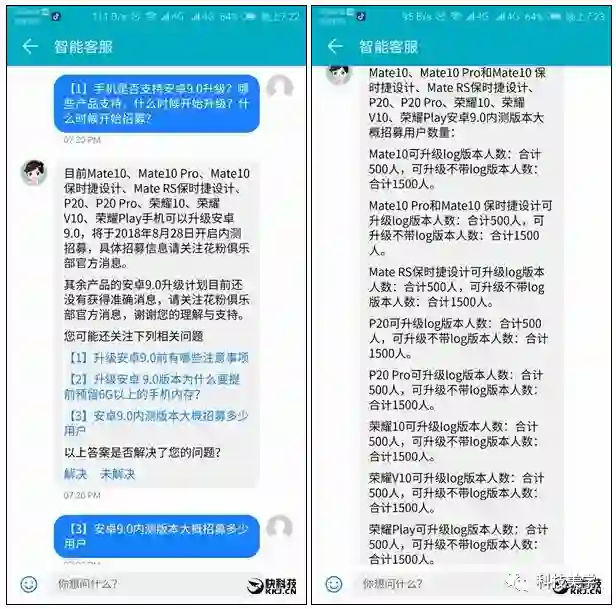 比如华为已经在测试 安卓9.0 的升级工作,而且机型覆盖新老型号十多款,相信华为能为我们带来优秀安全的软件体验。从以往安卓大版本升级的力度看,华为一直是全球领先的,之前大量的老机型都已经升级了基于安卓8.0的EMUI最新版。以下图片来自快科技