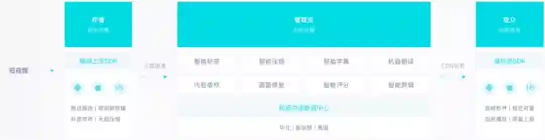 比如就短视频而言,就是「如何再造一个抖音」的一站式解决方案了。集合内容生产(采编)、视觉特效、媒资管理、分发消费、质量分析等功能,提供短视频制作工具、质量控制、缓存策略、编解码技术等,能够帮助企业快速搭建抖音级体验的短视频 App。